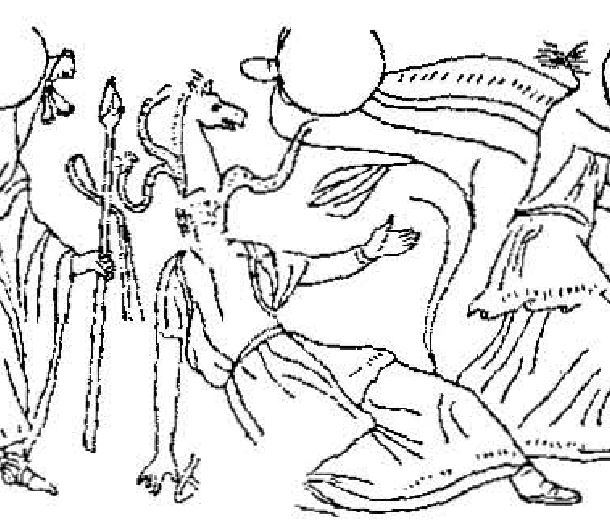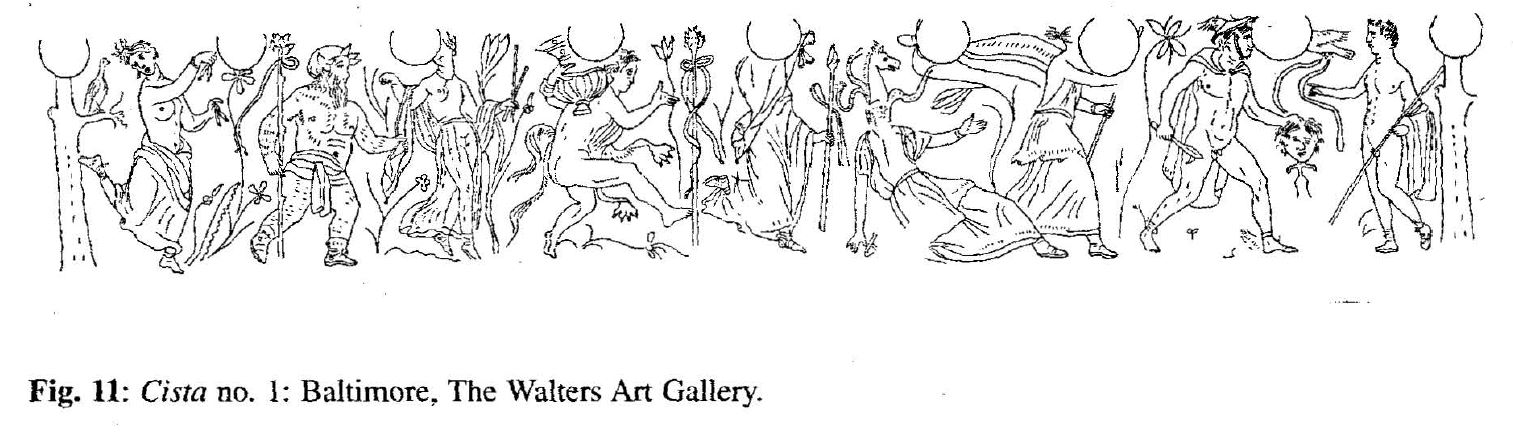 Notice in the midst of this Dionysiac revel Medusa collapses after being decapitated by Perseus and Pegasus rises from her neck framed by a few snakes of her remaining hair. Fantastic image. Great Halloween costume idea too. Here’s the actual object but the line drawing is far clearer: