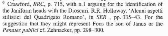 I’m worrying about the janiform heads on the quadrigati and prow bronzes today and how they might relate to each other and Roman cult practices. This is bringing me back to a number of different posts on related subjects and has led me to some other goodies as well.