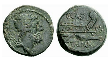 Based on the New Italy Hoard (Hersh NC 1977), Mattingly holds that the denomination the Dodrans (3/4s of an as = 9 unciae) was first introduced by C. Cassius, not M. Metellus (2004: 220). This rules out his original theory echoed by Crawford in RRC that the type was introduced by the later to provide a space to commemorate a divine ancestor via the legendary Caeculus. Why would Cassius create a new denomination for Vulcan? Mattingly gives a terse answer: “The Vulcanal near the forum was the center of popular and tribunican activity in the early republic.” No footnote. It’s a hard assertion for which to find much support.